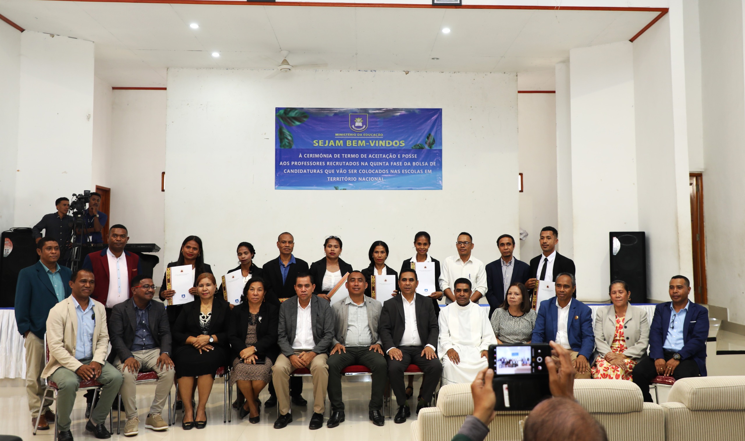Ministรฉriu Edukasaun liuhosi Sua Exelรฉnsia Sekretรกriu Estadu Ensinu Sekundรกriu Jerรกl no Ensinu Sekundรกriu Tรฉkniku Vokasionรกl Sr. Domingos Lopes Lemos hamutuk ho Prezidente Interinu Komisaun Funsaun Pรบblika Sr. Josรฉ Telo Soares Cristovรฃo fรณ pose ba manorin-naโin 178 rekrutadu husi faze dalima bolsa kandidatura Ensinu Bรกziku.