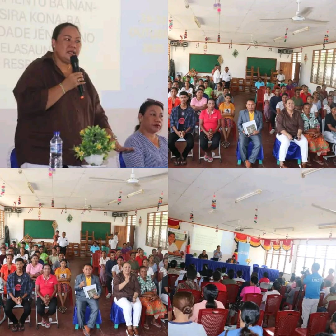 Ministériu Edukasaun, liu husi Diretora Jerál Planu, Polítika, Inkluzaun no Informátika (DJ-PPII), Odilia das Dores Ung Martins, hamutuk ho Xefe Gabinete Minsitra Paula Corte-Real no Diretór Servisu Edukasaun RAEOA, Vincencio Kono, halo abertura ofisiál ba formasaun ba inan-aman kona-ba igualdade jéneru no harii relasaun respeitozu iha Eskola Téknika Vokasional Palaban.
