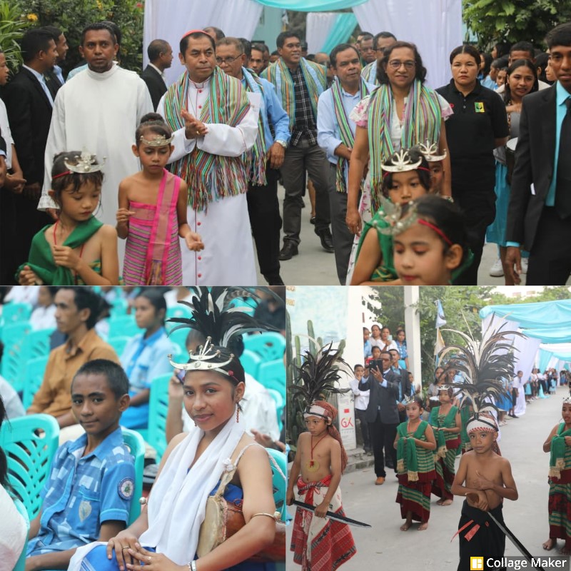 Sua Exelénsia Ministra Edukasaun Dra.Dulce de Jesus Soares ho Arsebispu Diózese Dili, Kardinál Virgílio do Carmo da Silva, SDB no Diretór Sáo José Operário, Padre César Magno inagura Eskola Ensinu Báziku Sentrál no Ensinu Sekundária Jerál Colégio São José Operário Balide.