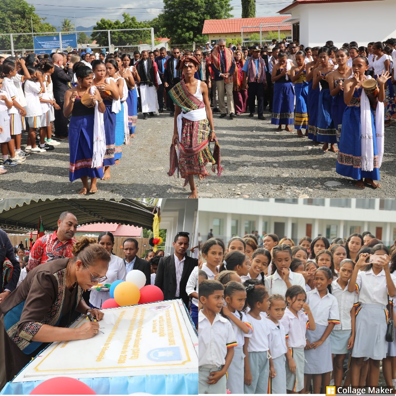Sua Exelénsia Ministra Edukasaun Dra. Dulce de Jesus Soares ho Emaxada Portugal Iha Timor-Leste Sr. Duarte Bué Alves nomós Prezidente Autoridade Munisípal Covalima Sr. Miguel Armada Cardoso hala’o inagurasaun ba edifísiu Eskola Cafe Suai, Munisípiu Covalima.