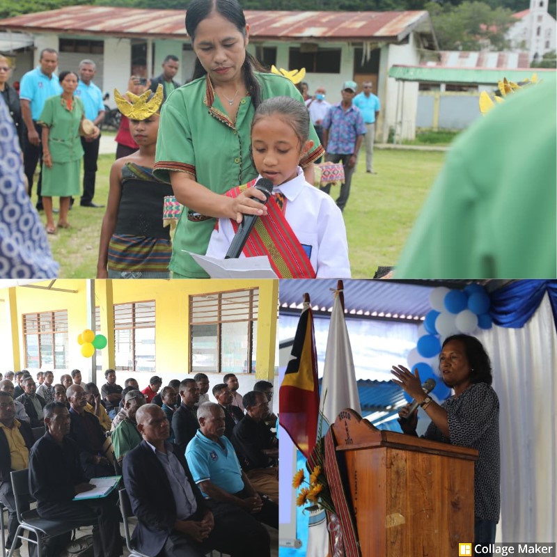 Sua Excelência a Ministra da Educação, Dra. Dulce de Jesus Soares, acompanhada pelo Administrador do Posto Administrativo de Aileu-Vila, Henrique de Deus, assistiu à apresentação dos resultados dos testes EGRA (Early Grade Reading Assessment) e EGMA (Early Grade Mathematics Assessment), conduzidos pela equipa pedagógica do Ministério da Educação junto de estudantes de todas as escolas do município de Aileu.
