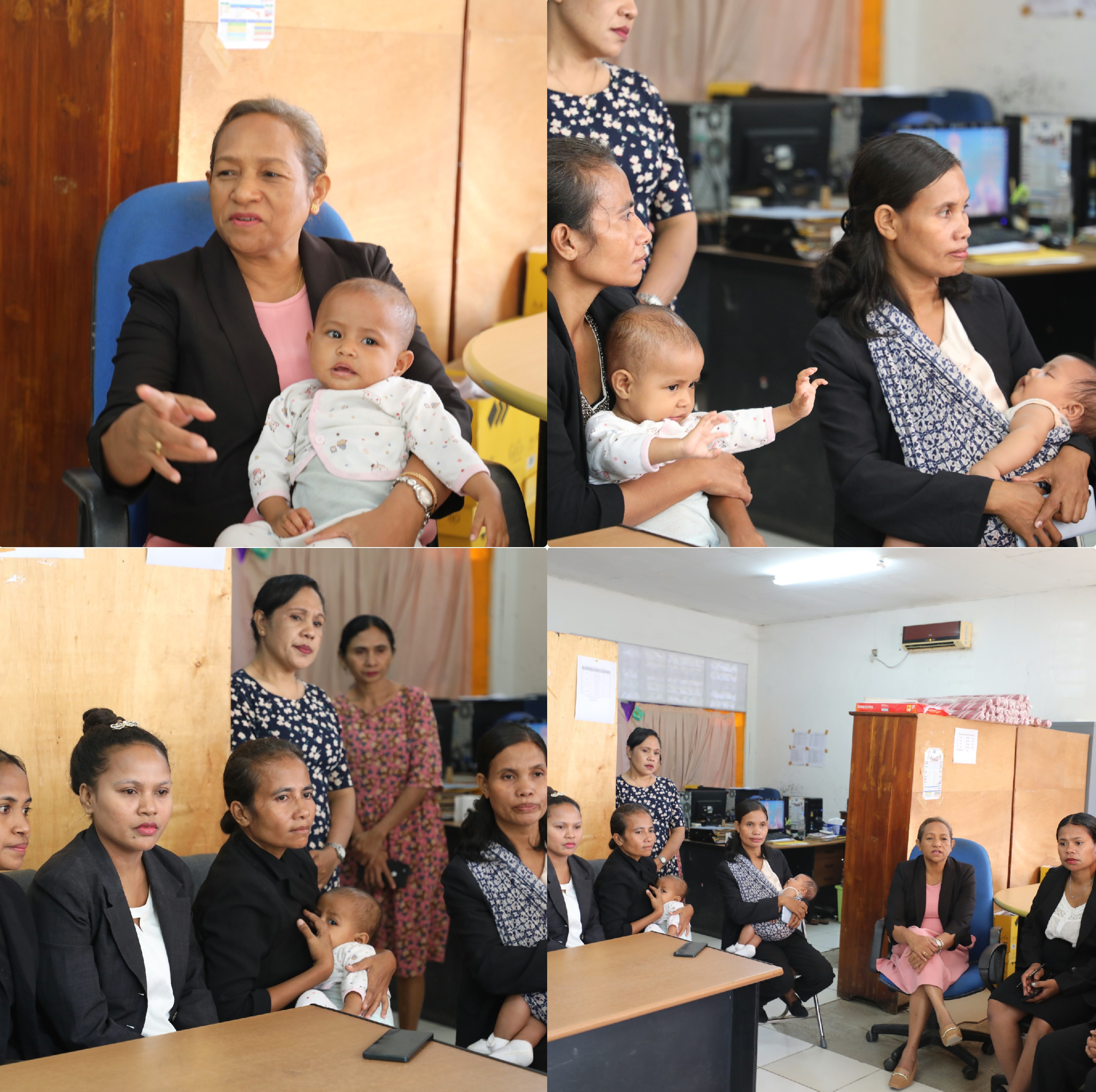 โHusu ba funsionรกriu sira atu ajuda mรณs kous troka malu ita-nia profesora nia bebรฉ neโe, nuneโe nia mรณs bele tuir formasaun ho diโak, bainhira toโo oras fรณ susu bebรฉ mak bele mai fรณ susu. Ita tenki apoiu no ajuda sira bainhira sira presiza ema seluk nia tulun. Kuidadu sira ho didiโak, tanba liuhusi sira mak bele prodรบs rekursu sira ho kualidade ba futuru nasaun nianโ, dehan S. E. Ministra Edukasaun.