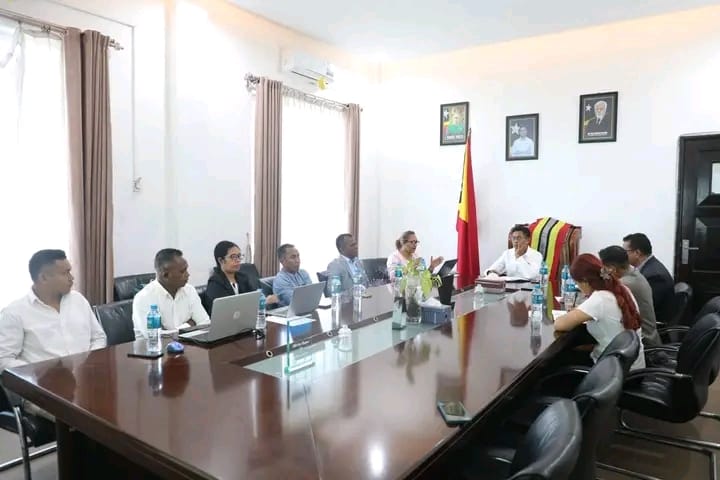 Díli, 15 de dezembro de 2025 – Sua Excelência a Ministra da Educação, Dra. Dulce de Jesus Soares, em conjunto com a Unidade Curricular Nacional, reuniu-se com Sua Excelência o Vice-Primeiro-Ministro, Ministro Coordenador dos Assuntos Sociais e Ministro do Desenvolvimento Rural e Habitação Comunitária, Mariano Assanami Sabino, para apresentar os resultados do Exame Nacional de 2025. O encontro teve lugar na Sala de Reuniões do Vice-Primeiro-Ministro, no Palácio do Governo.