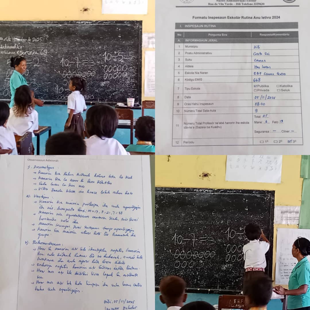 Díli, 5 de novembro de 2025 — O Ministério da Educação, através da Inspeção-Geral da Educação (IGE), realizou uma observação na Escola de Ensino Básico Filial de 1.º e 2.º Ciclos de Camea Centro, no Posto Administrativo de Cristo-Rei, Município de Díli.