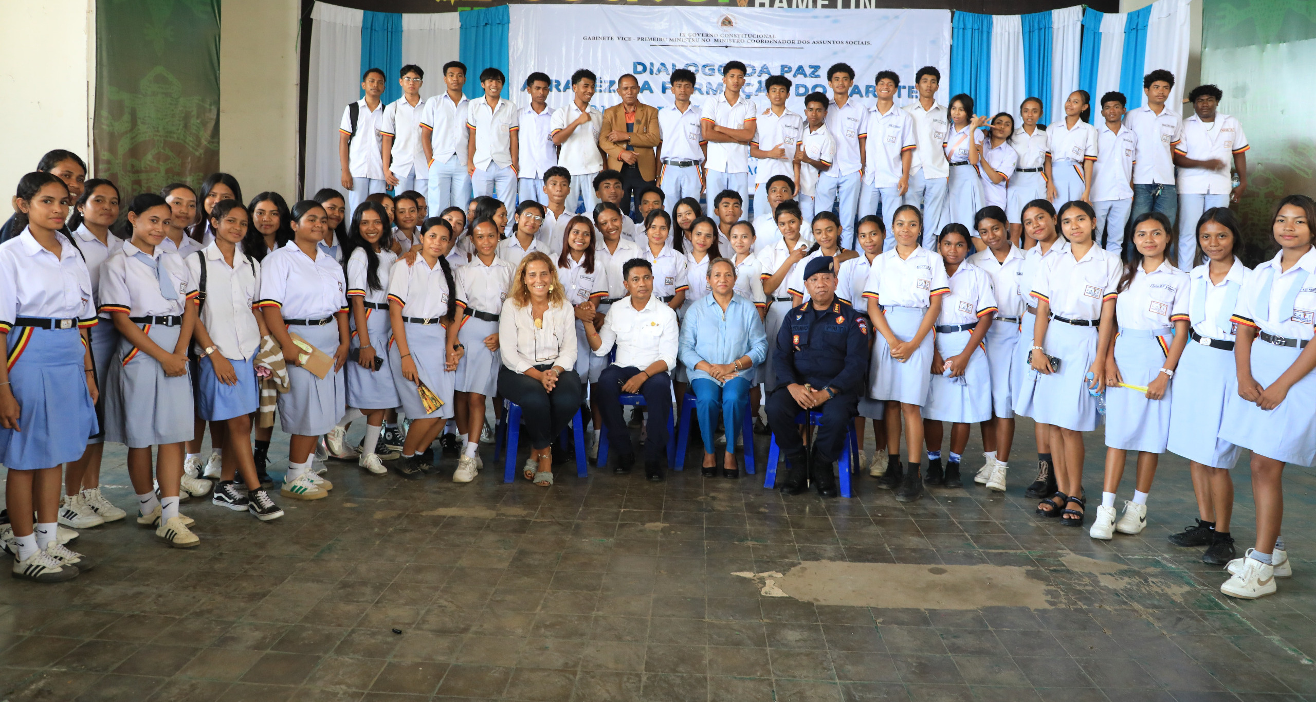 Iha fatin hanesan, Sua Exelénsia Ministra Edukasaun, Dra. Dulce de Jesus Soares hateten, ohin halo diálogu ba paz ida ho estudante sira kona-ba asuntu ne’ebé mak inportante tebes no amigável loos hodi ko’alia kona-ba formasaun karakter, disiplina étika morál no fó korajen ba estudante sira atu sai ema ne’ebé la’os matenek de’it iha disiplina ne’ebé maka sira estuda, maibé oinsá mak estudante ne’ebé mak bele kontribui ba dezenvolvimento paz iha nasaun ida ne’e liuhusi sira-nia karakter.