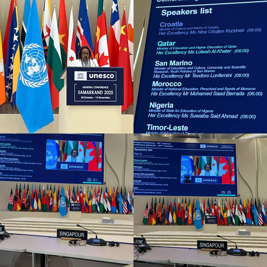 Usbequistão, 31 de outubro de 2025 — Sua Excelência a Ministra da Educação, Dra. Dulce de Jesus Soares, representou Timor-Leste na 43.ª Conferência da UNESCO, realizada na cidade de Samarcanda, Usbequistão.